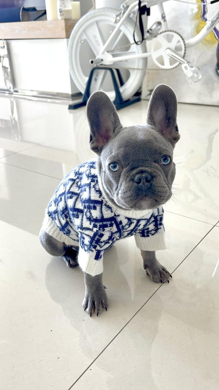 I absolutely love it! The designer clothes are fantastic, and the stitching quality is excellent. When I put the sweater on him, I got numerous compliments while walking him in the street. I've already ordered five items and plan to get more; you won't regret it. I chose a 2X because he's a bit on the chunky side, so I just needed to roll the sleeves up a little.